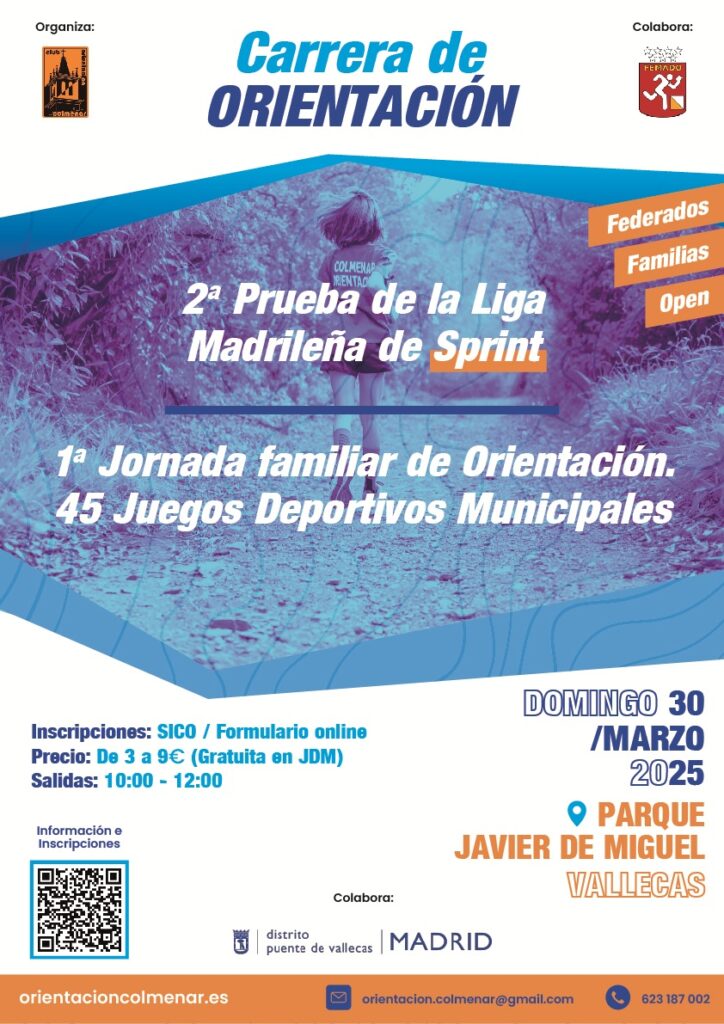 Con el comienzo de la primavera brotan nuevas carreras organizadas por el club Orientación Colmenar; la primera de ellas, el domingo 30 de marzo en el Parque Javier de Miguel (Vallecas, Madrid).