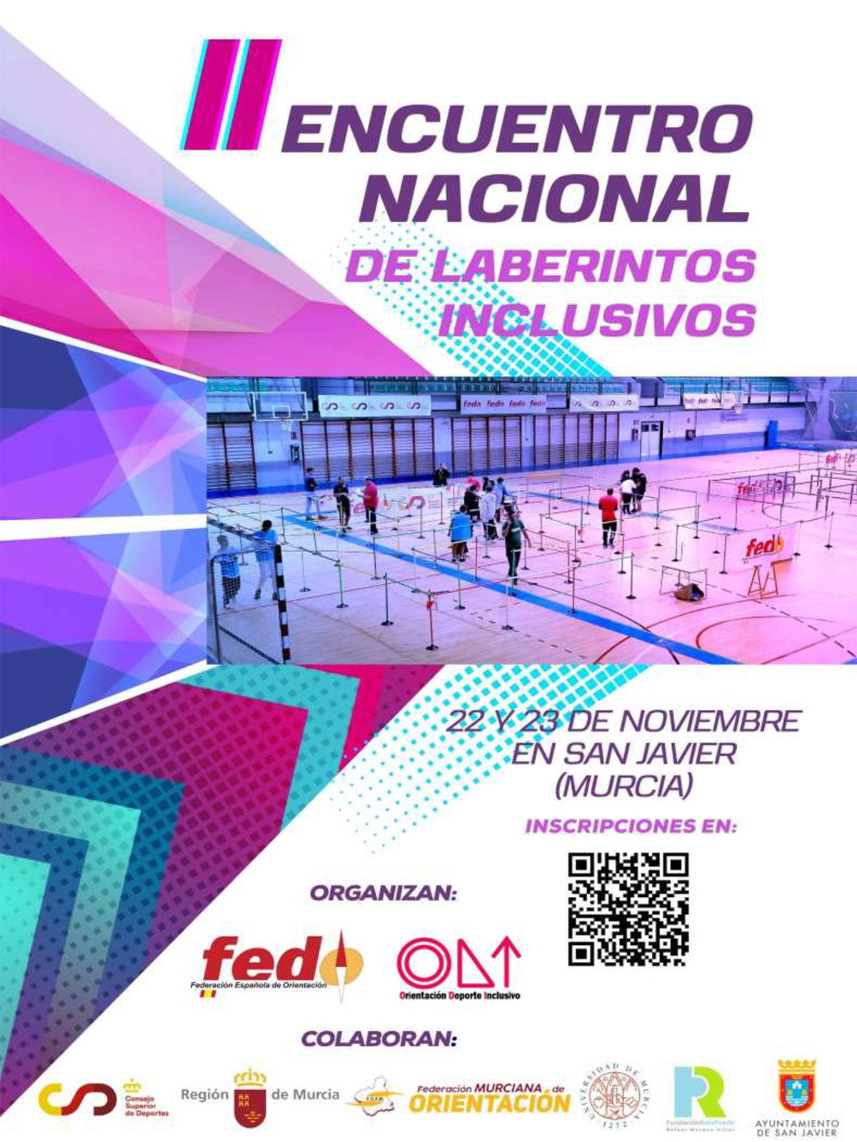 La Federación Española de Orientación (FEDO), a través de su Comité de Orientación Inclusiva, anuncia la apertura de inscripciones para el II Encuentro Nacional de Laberintos Inclusivos, que se celebrará los días 22 y 23 de noviembre de 2025 en San Javier (Murcia).
